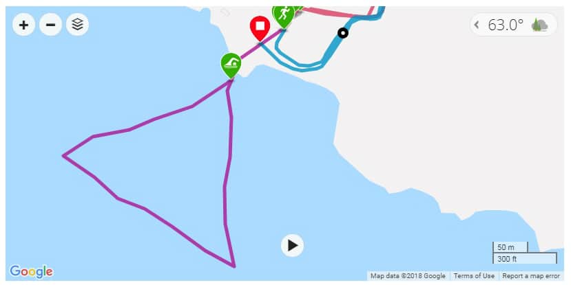From the map generated from my GPS watch, my actual path was reasonably straight.