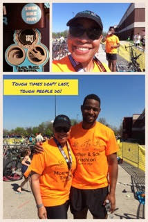 I registered for Try Tri Edwardsville’s super sprint in April 2016. Much to my surprise, my 27-year old son, Chris, who was attending graduate school in New York, flew in and raced with me. We both finished the race – he, the sprint and me, the super sprint. It felt amazing to finish. Even though I was one of the last ones, I wasn’t THE LAST!