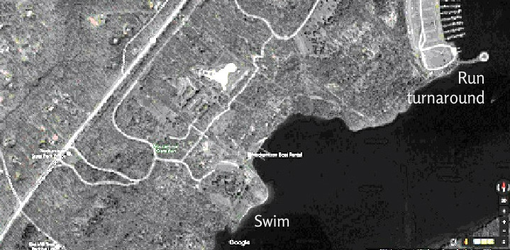 - First triathlon without a timing chip for recording times of the three legs and two transitions. For this race, there was only one transition.